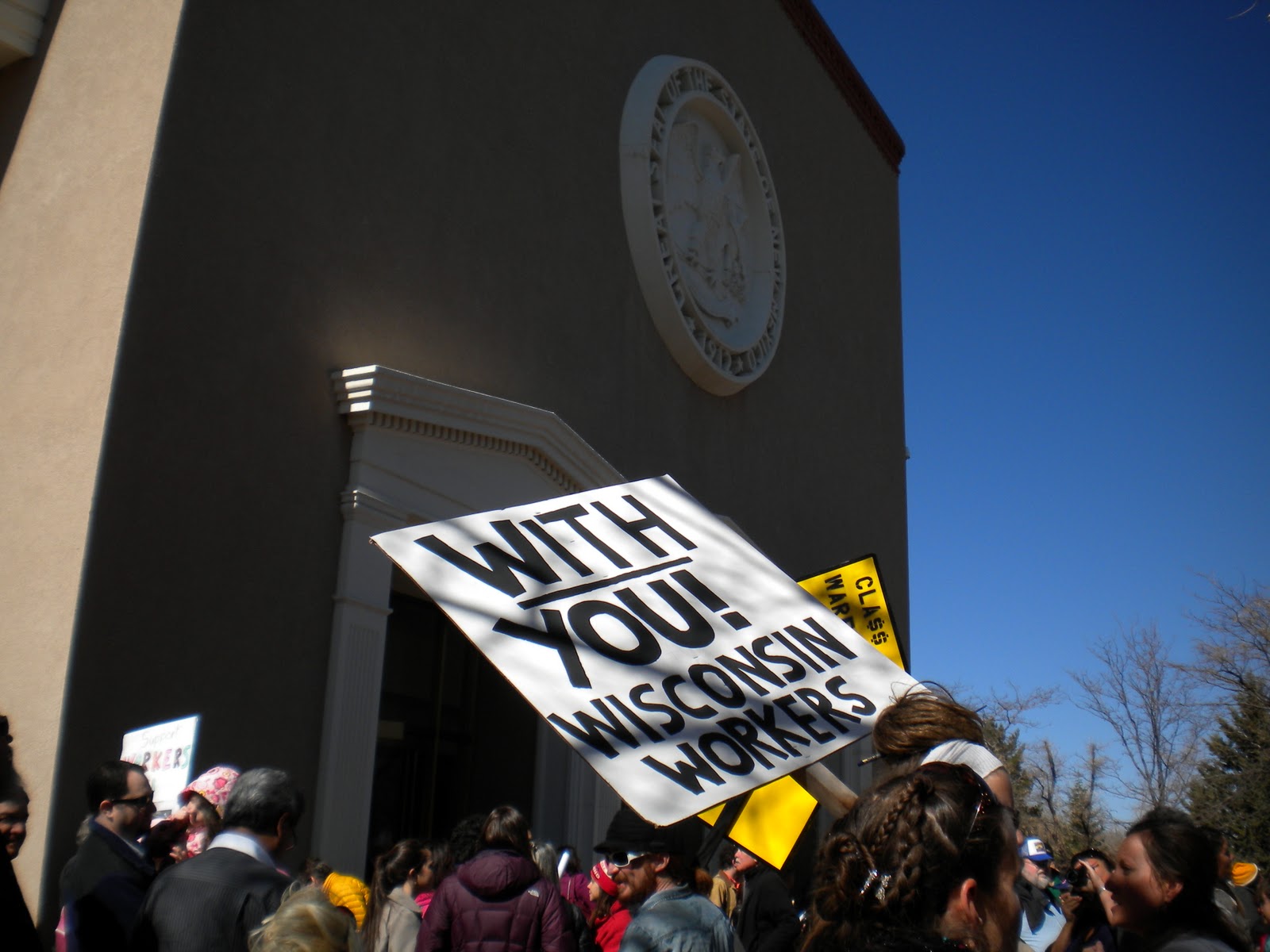 When Hilary was done, my mom and I walked back to the roundhouse and into a huge crowd of union/teachers/supports for the Wisconsin peeps. It’s the first time I’d ever been in the midst of something like that. So exhilarating!