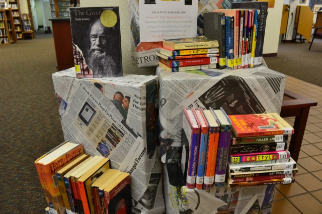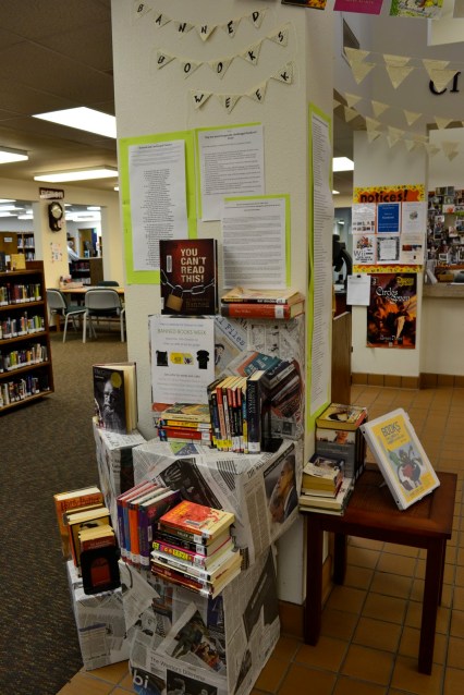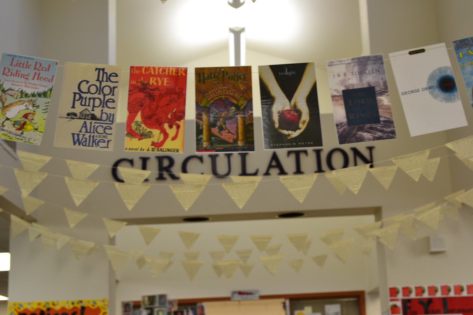 The book cover banner has really caught the attention of the patrons. But maybe that’s cause it got kinda droopy and was smacking people in the face as they walked up to the circ desk…