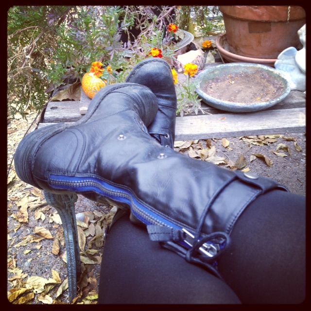 I wore my zombie apocalypse boots to work. I just love the blue zipper on these dudes!