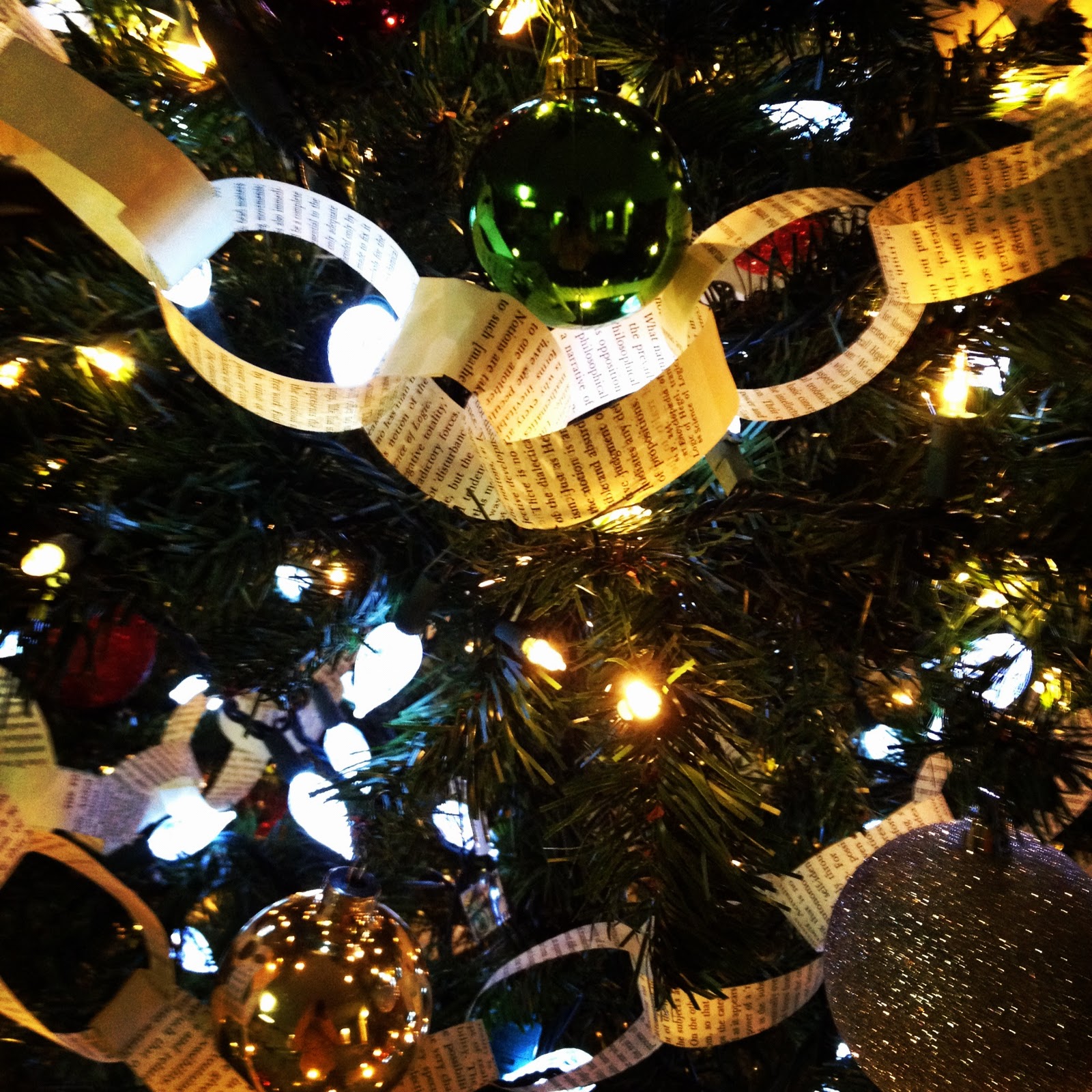 I did manage to get our library Christmas decorations and tree up. I try and incorporate my book page decorations into every possible display possible! While I was in the back by periodicals decorating, one of my favorite little patron dudes, age 1, walked over and helped me decorate. He was absolutely enamored with the tree and lights.